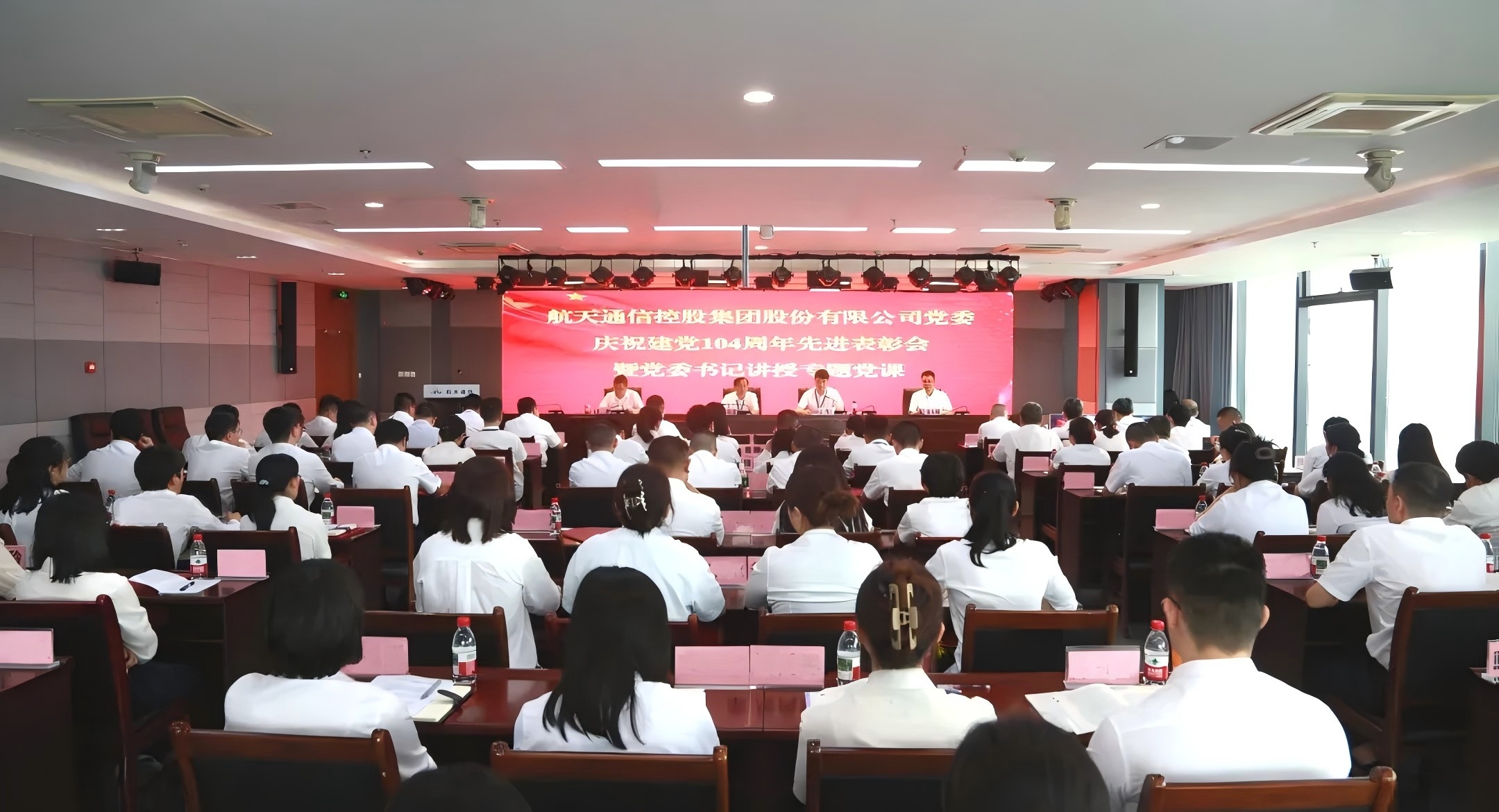 7月2日,航天通信召開慶祝建黨104周年先進表彰會,航天通信黨委書記、董事長張忠榮以《鍥而不舍落實中央八項規定精神,以優良作風開創航天通信新局面》為題講授深入貫徹中央八項規定精神學習教育專題黨課,與黨員干部職工共同再學習再領會習近平總書記關于黨的作風建設的重要論述,堅持以優良作風凝心聚力、攻堅克難,助力集團公司建設“不一樣的航天科工”。公司黨委委員、副總裁、工會主席姜明生主持會議,并宣貫集團公司有關會議精神。